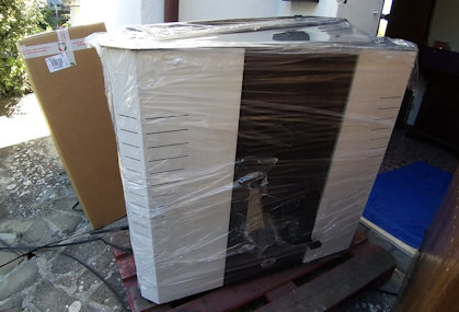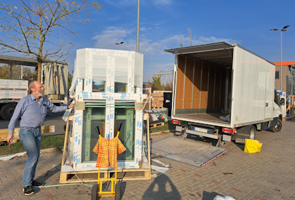 Dus een bus gehuurd en met z'n tweetjes maar een poging gedaan om een pallet vol ramen en deuren op te halen in Bologna.